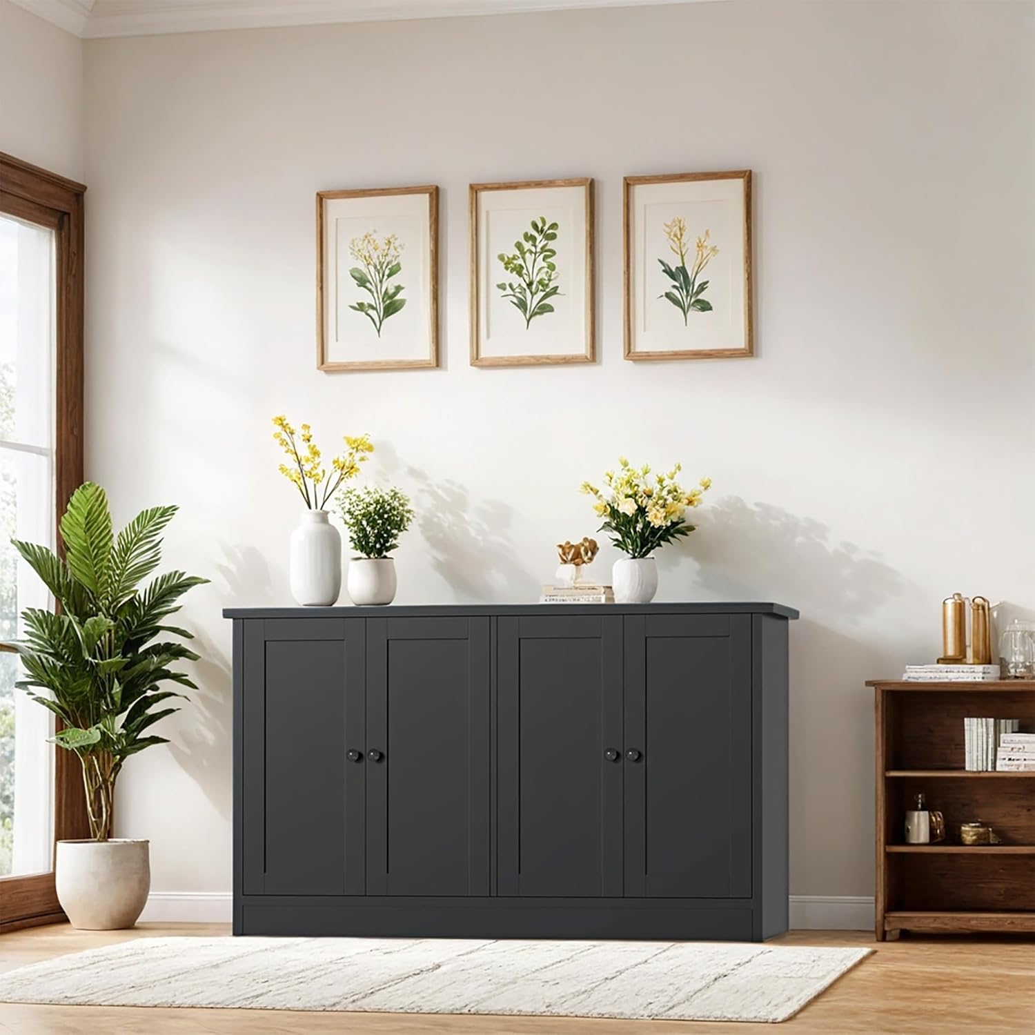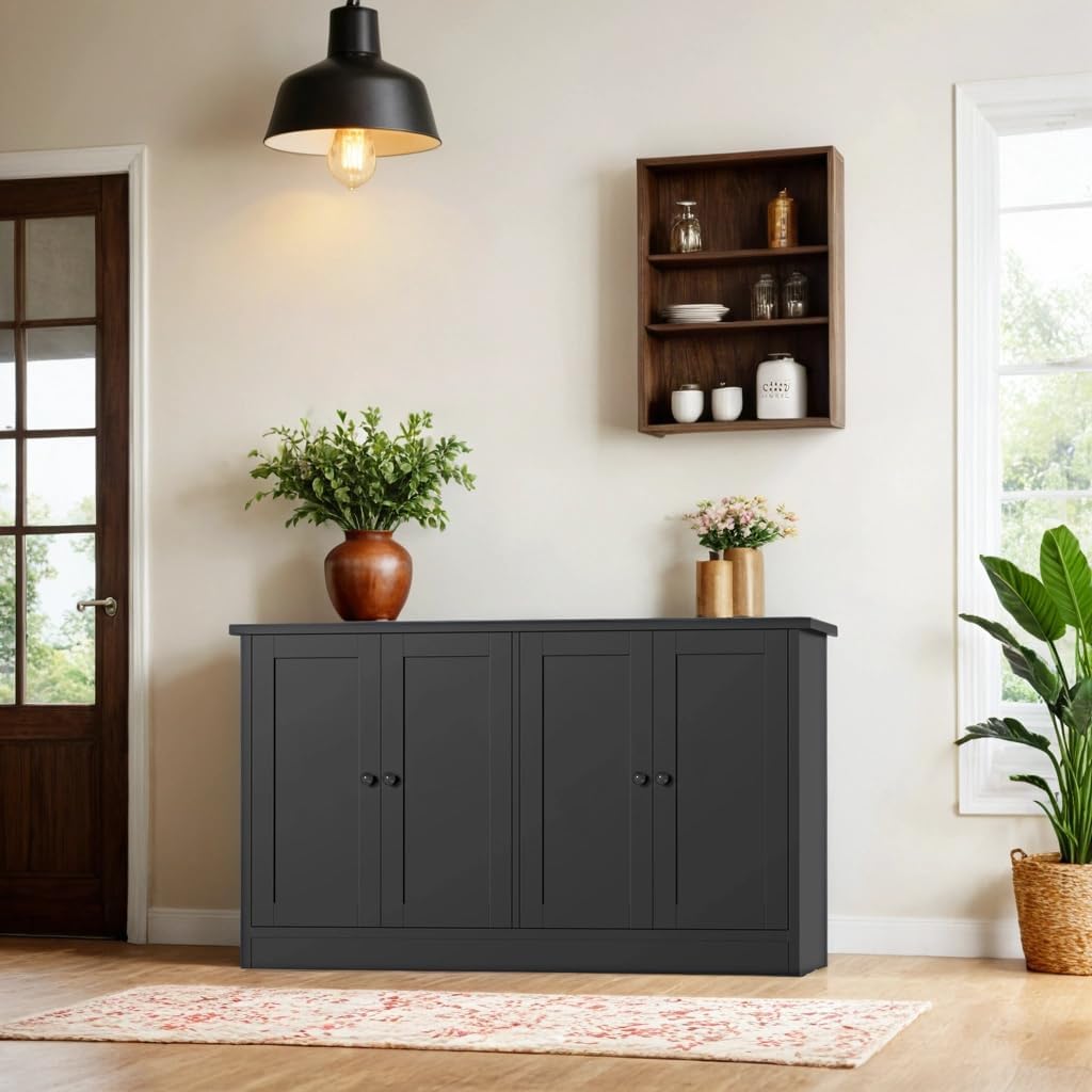 holzart Black Buffet Cabinet with Storage, 49″ Modern Kitchen Sideboard with 4 Doors & Adjustable Shelves, Wood Coffee Bar Cabinet Console Table for Dining Room, Living Room, Entryway