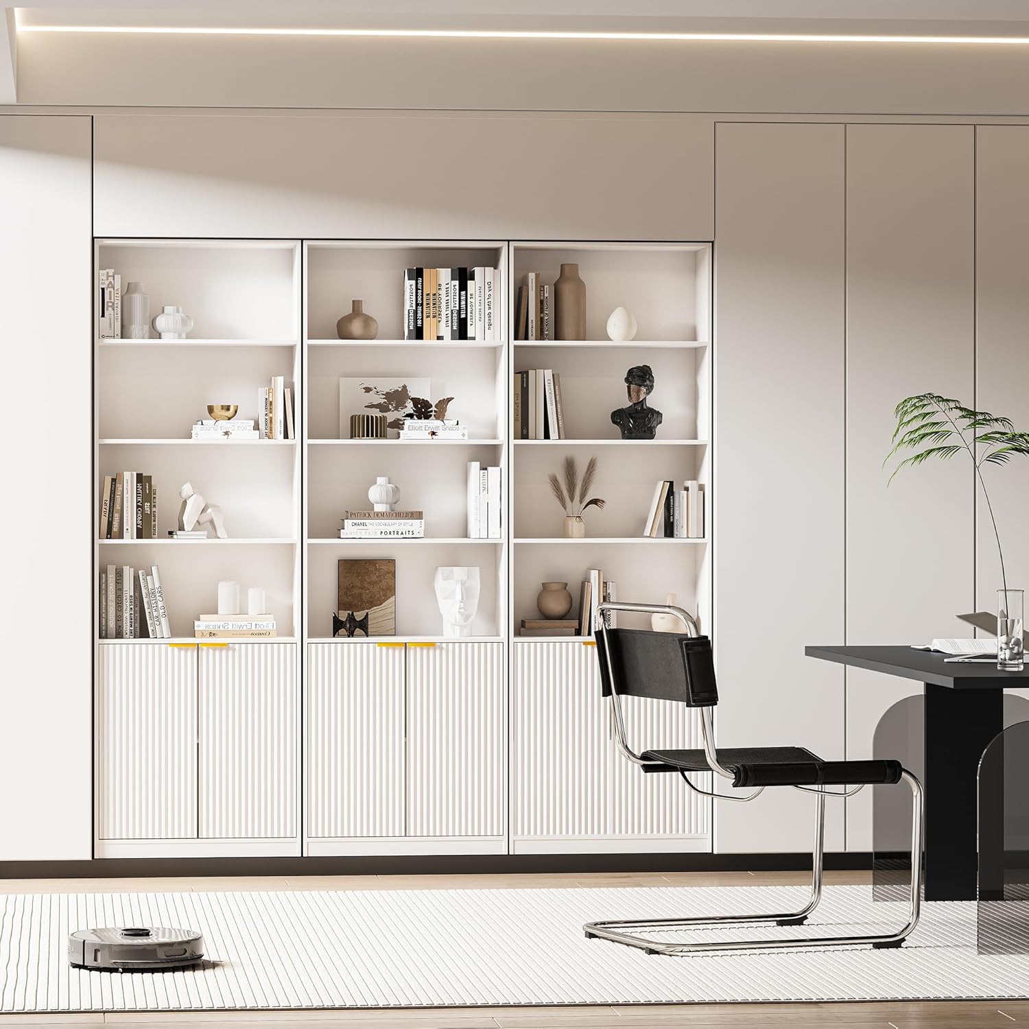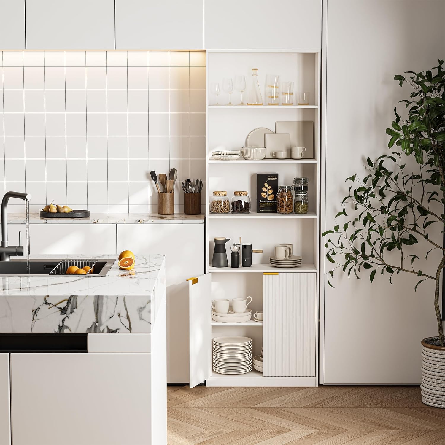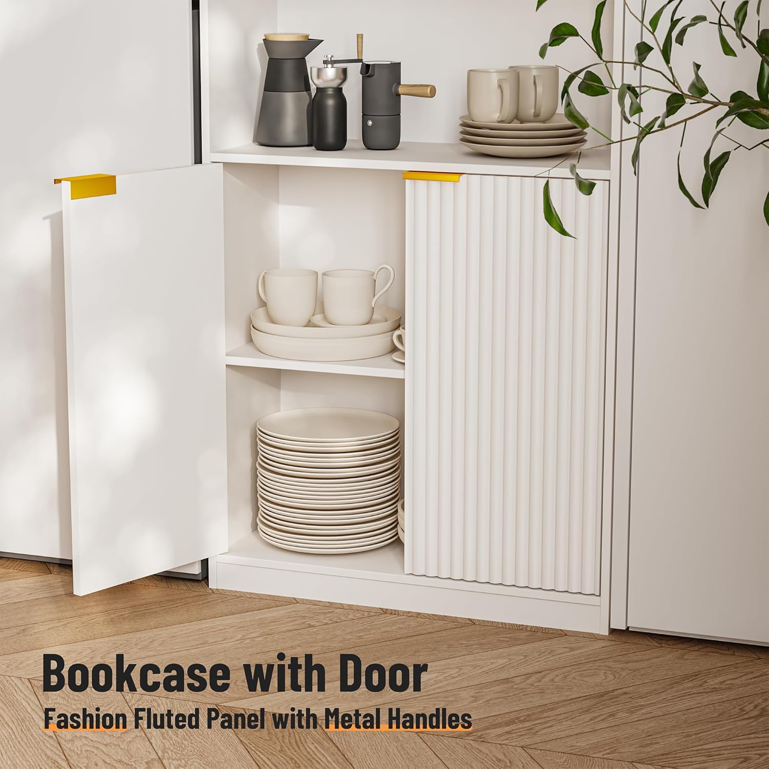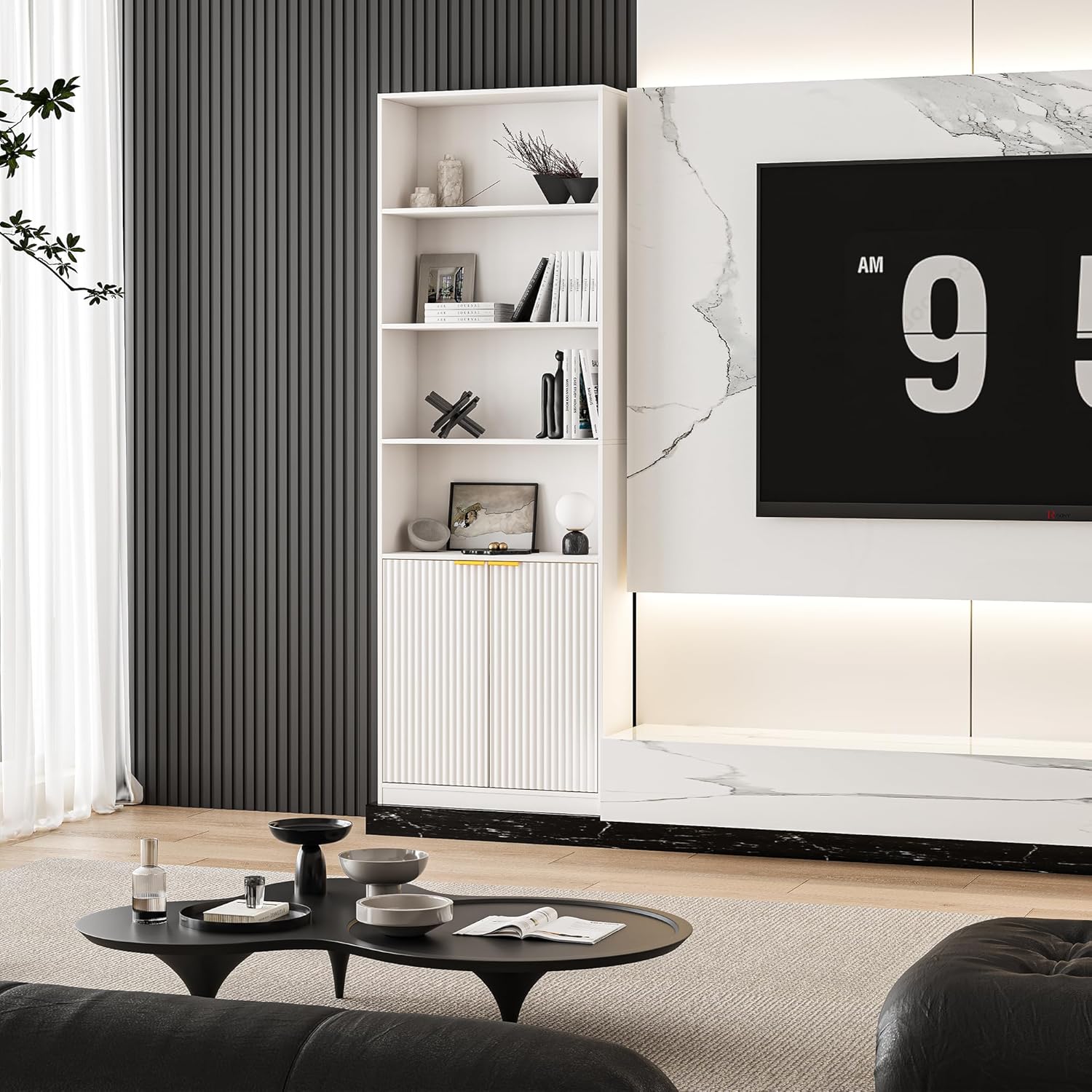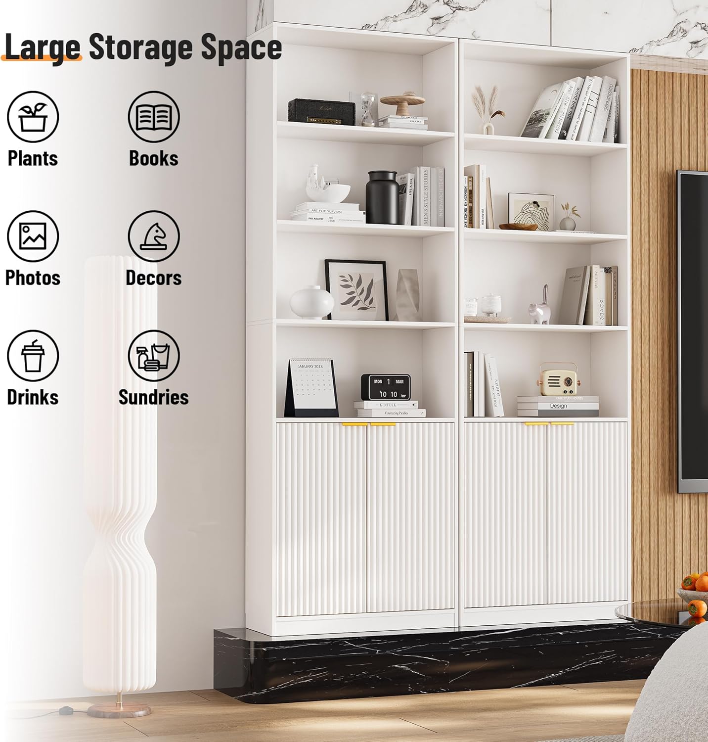 INNOD 72″ Tall Book Shelf Bookcase with Doors, Floor Standing 7 Tier Bookshelf Display Shelves, Bookshelf with Storage Cabinet, Home Decor Furniture for Living Room Bedroom and Home Office
