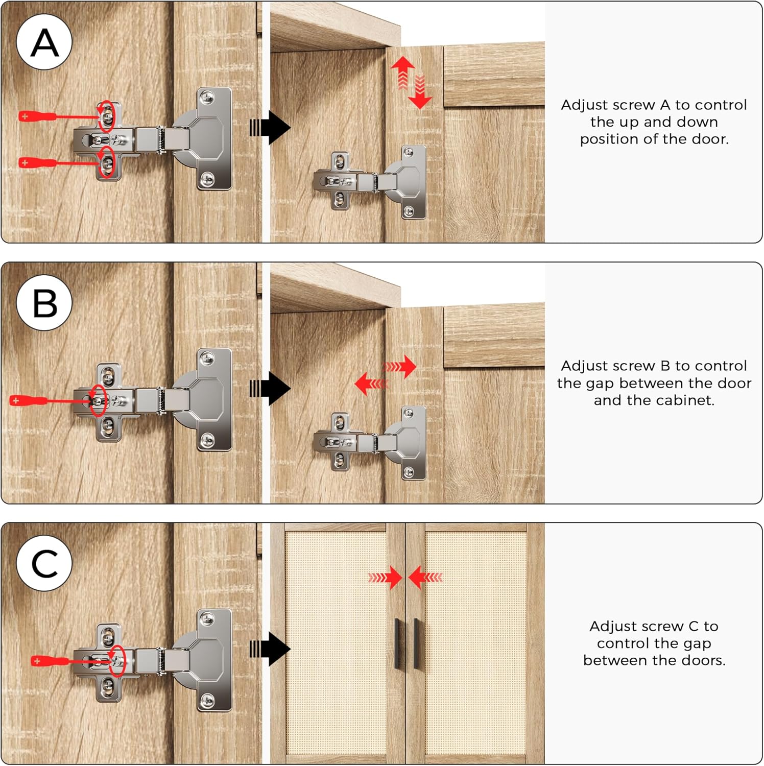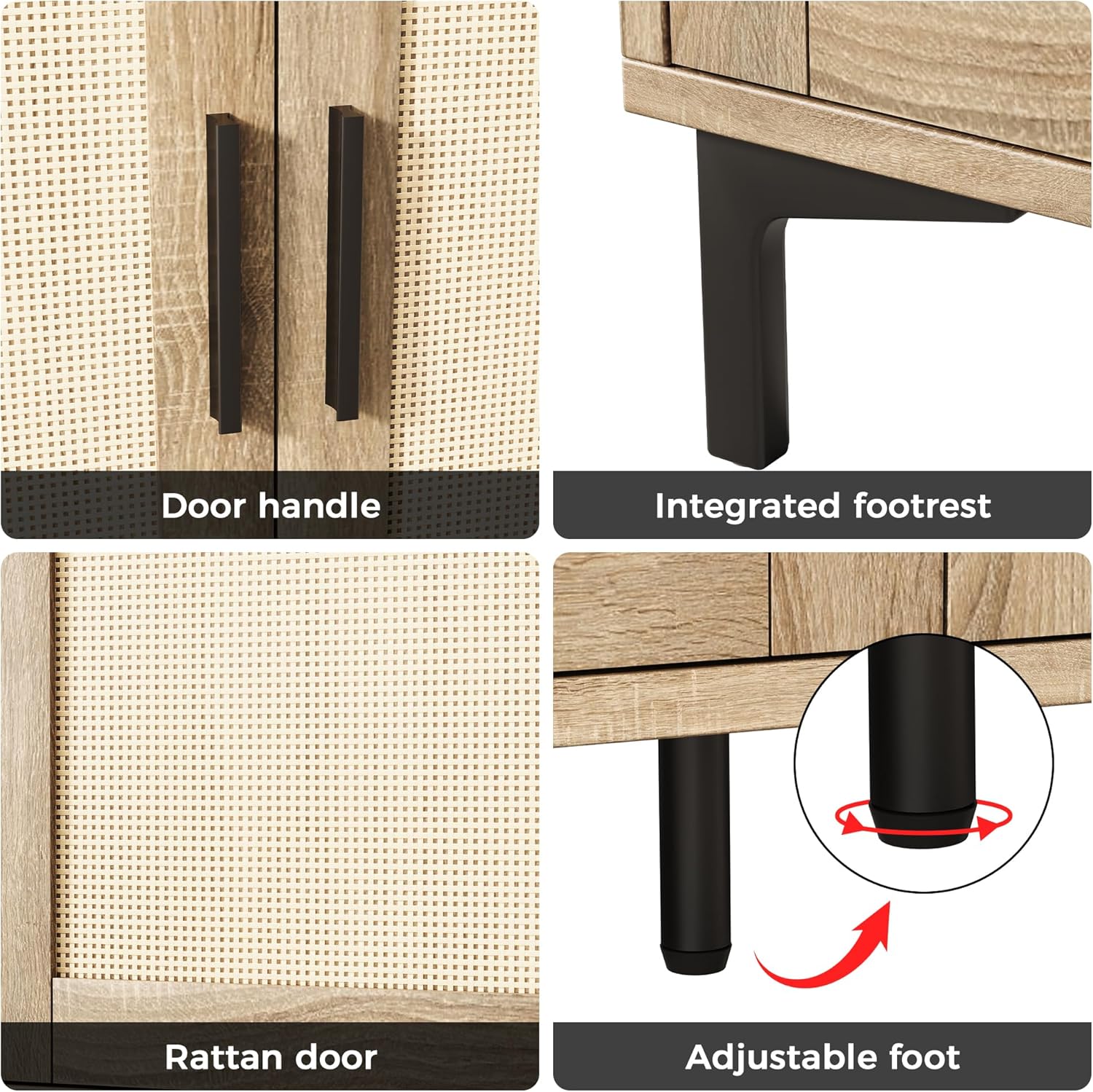 JASIWAY Sideboard – Kitchen Buffet Cabinet with Rattan Decorated Doors, Accent Cabinets with Doors, Coffee Bar Cabinets Rattan Sideboard Buffet Cabinet with Storage (Natural with 4 Doors)