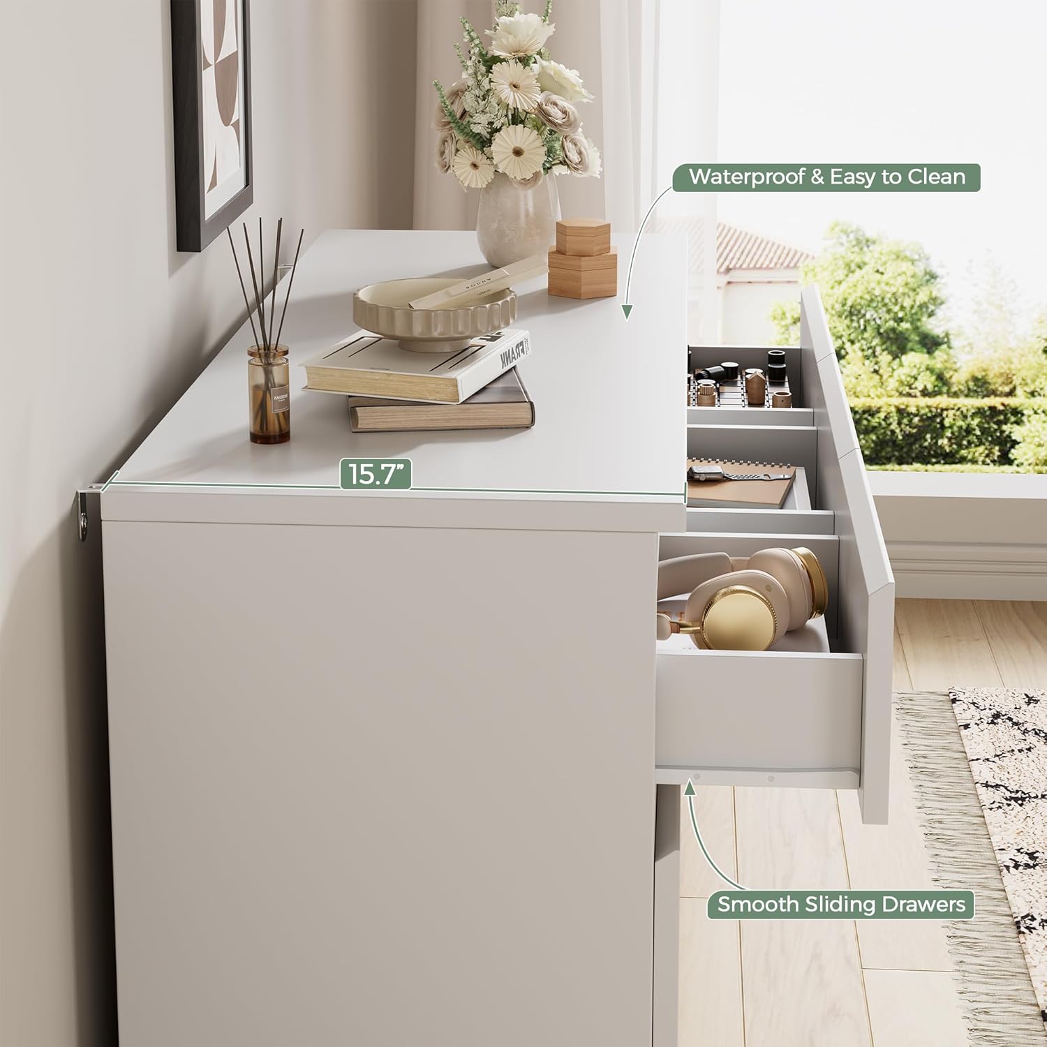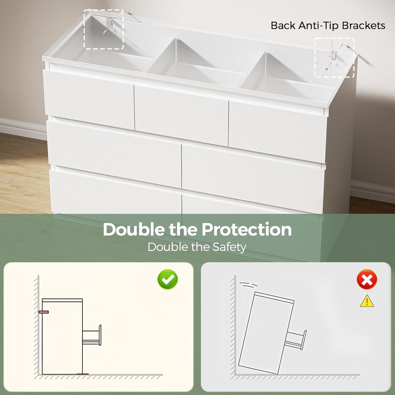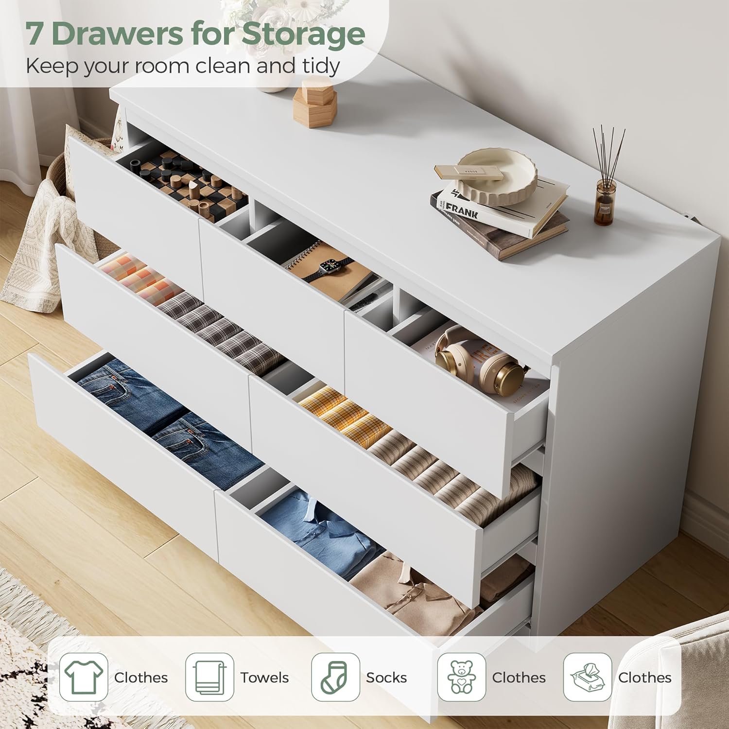 Jocoevol Modern White 7 Drawer Dresser for Bedroom, Simply Chest of Drawers, Wood Storage Dresser with Deep Drawers for Living Room Hallway Entryway, White