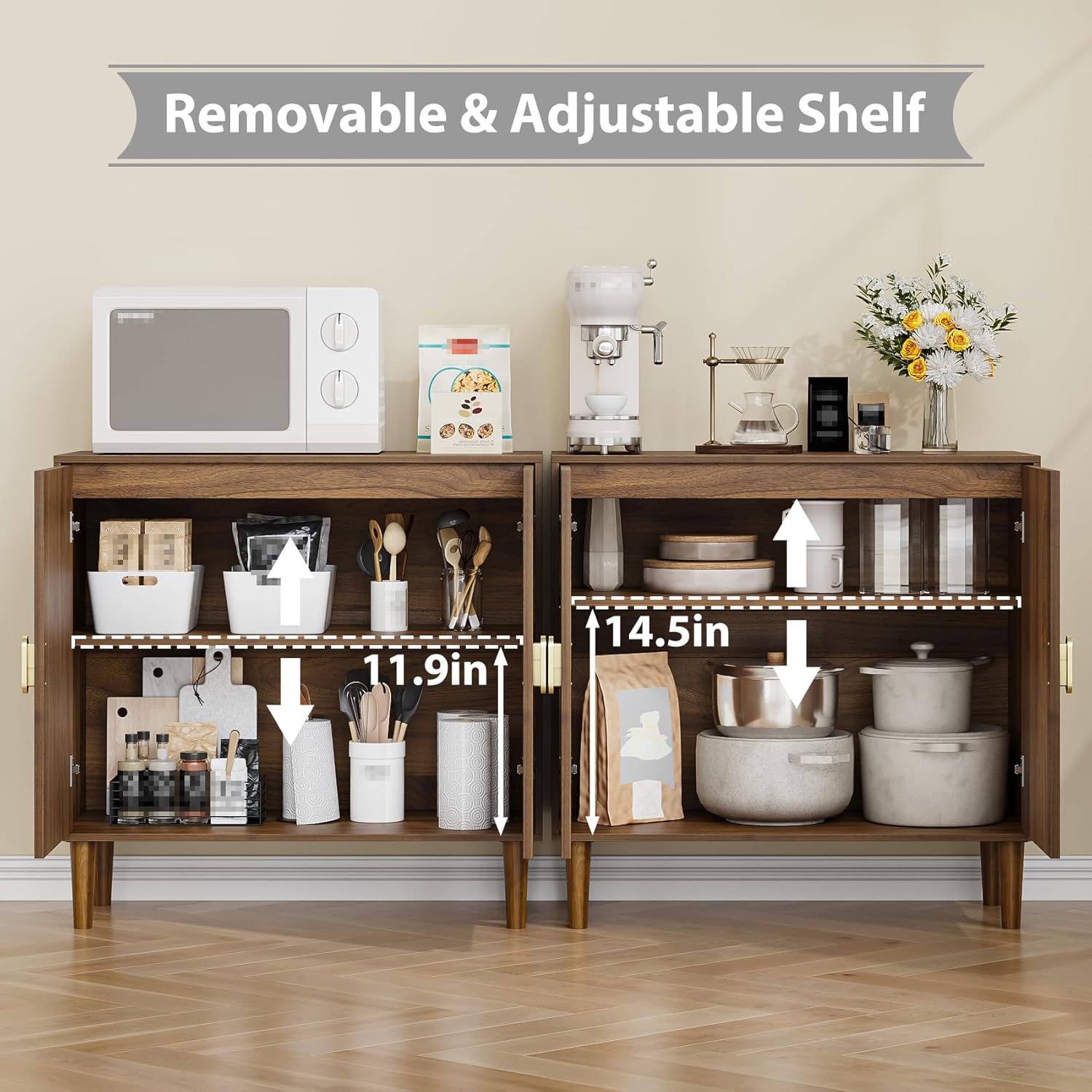 Measurements 31.3" Wide x 15.0" Depth x 30.6" Height, with versatile design and ample storage space, this wooden buffet sideboard cabinet can be used as a kitchen pantry, a coffee bar station, a hutch cupboard, a home office cabinet, etc.