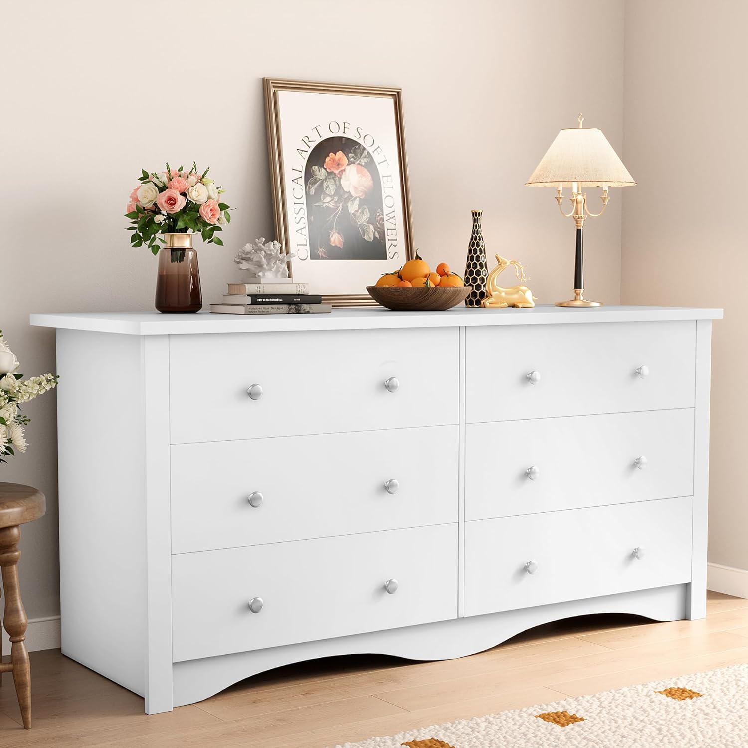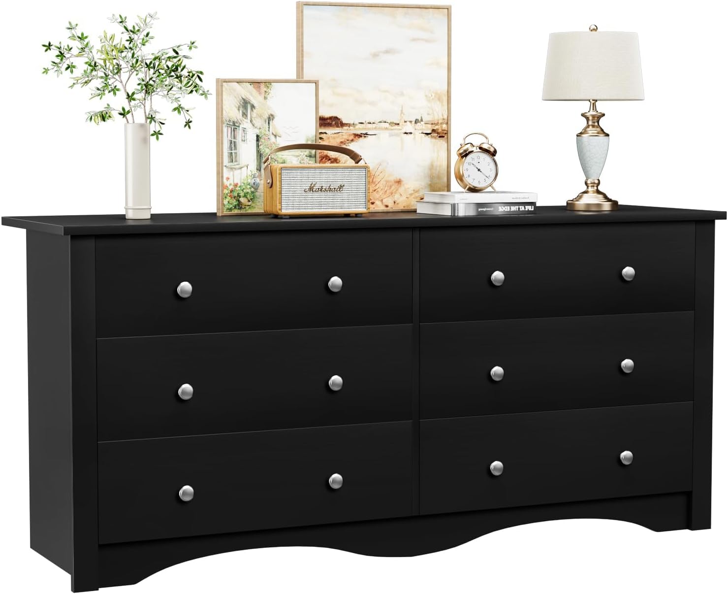 Shahoo Wood Dresser for Bedroom, Wide Chest of Drawers with 6 Drawers,Storage Tower Unit, Modern Closet Store Organizer for Living Room, Hallway (Black)
