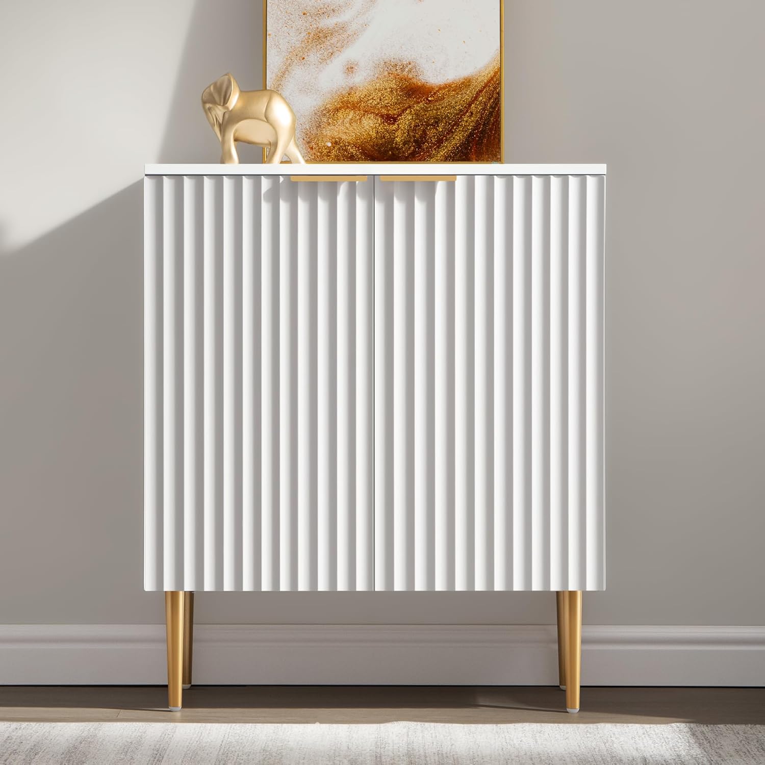 SICOTAS 57″ Modern Sideboard Buffet Cabinet – Elegant Storage Credenza with 4 Doors & Adjustable Shelf, Space-Saving Console Coffee Bar Table for Entryway, Kitchen, Living Room or Hallway