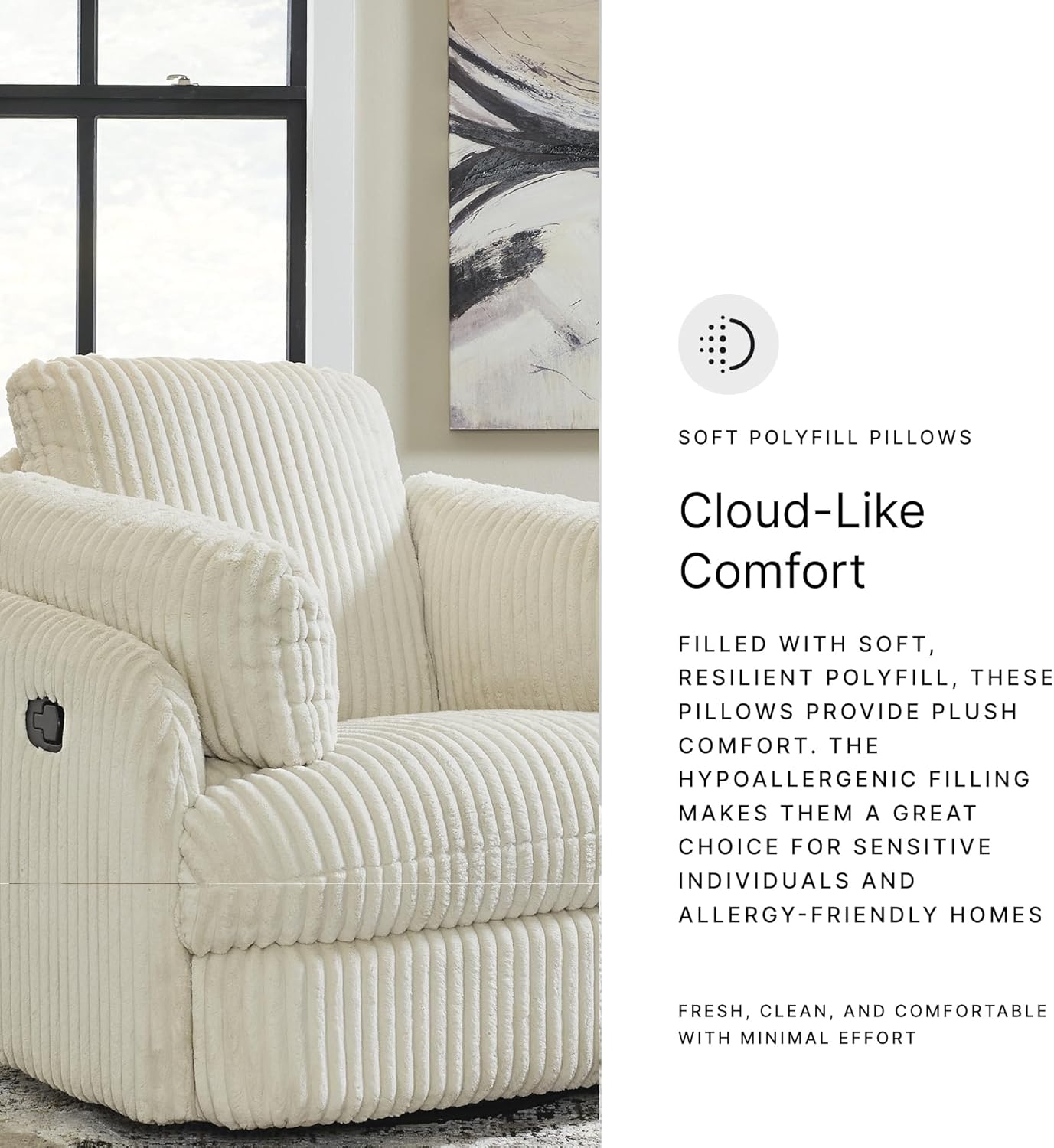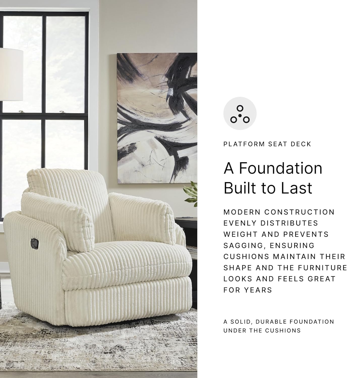 Signature Design by Ashley Tie-Breaker Cozy Contemporary Manual Press-Back Swivel Glider Rocker Recliner with 2 Bolster Pillows and Hidden Storage, White