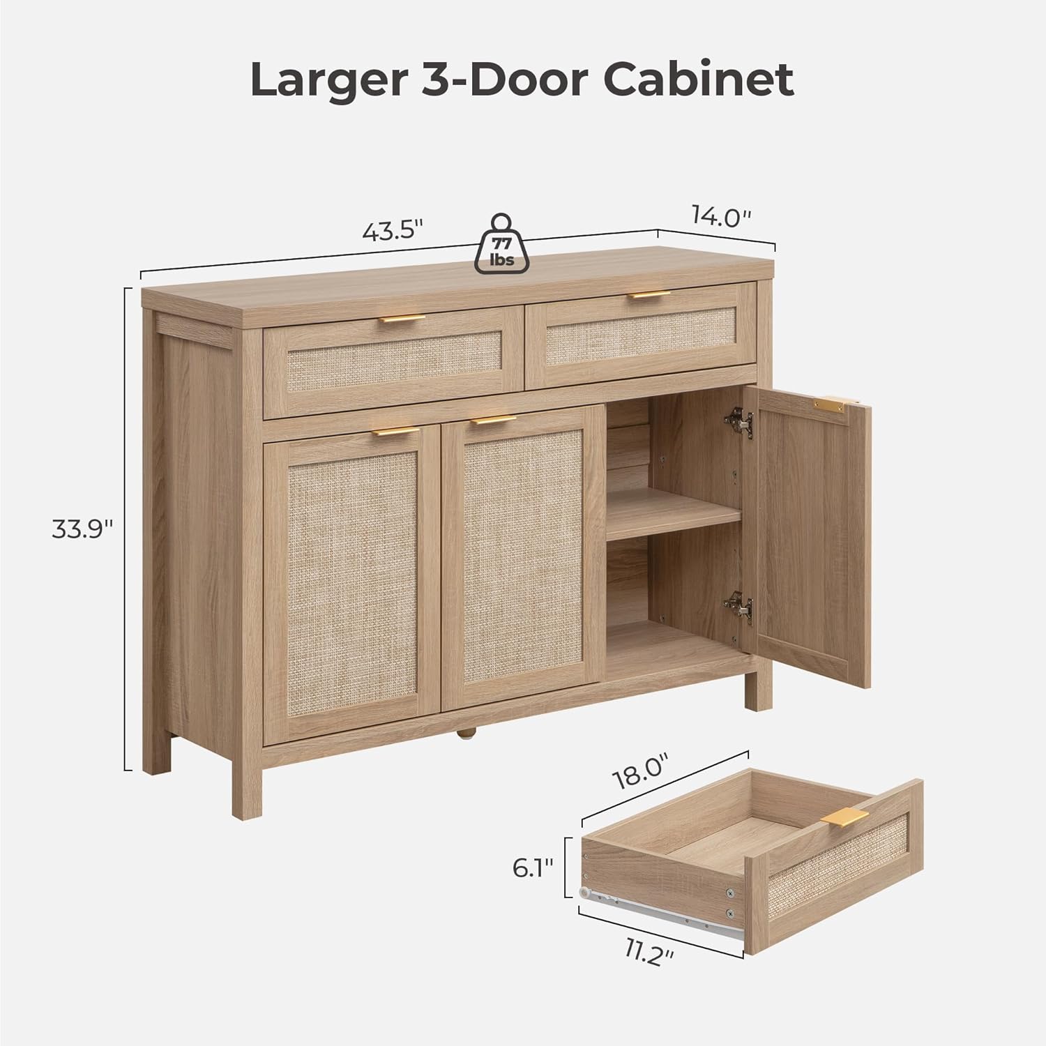 Smart FENDEE Sideboard Cabinet, 31.5″ W Farmhouse Buffet Cabinet with Slatted Doors & Adjustable Shelf, Wood Coffee Bar Storage Station for Kitchen, Dining Room, Living Room, Entryway, Walnut Color