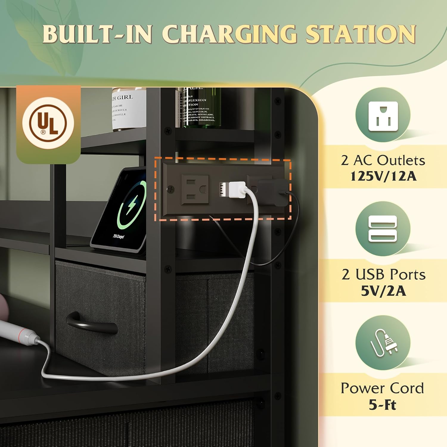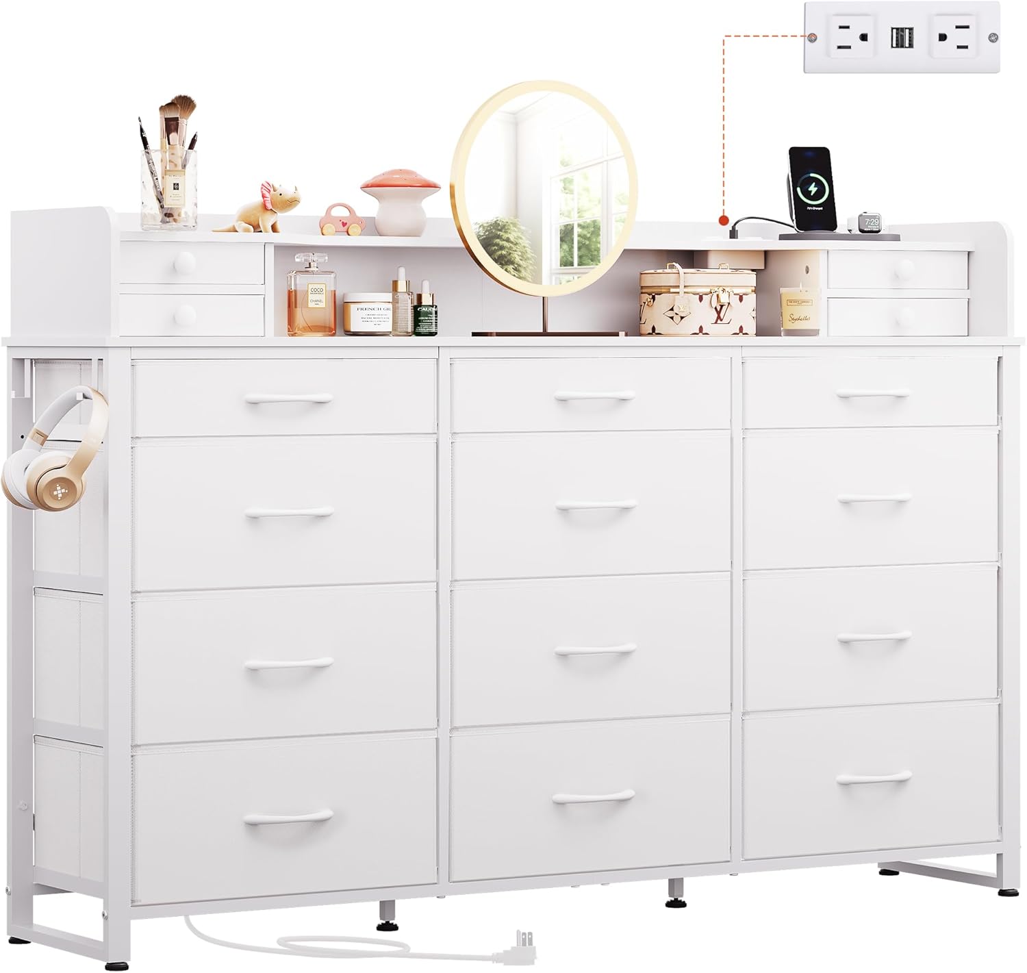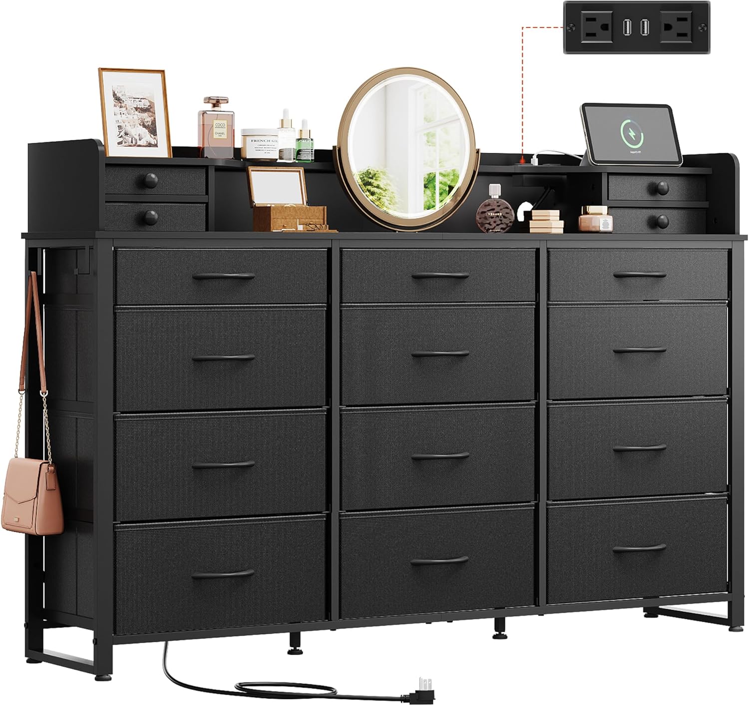 WLIVE Storage Organizer Unit with 15 Fabric Drawer & 5 Open Shelves, Tall Black Storage Drawers Organizer with Charging Station, Storage Tower Organizaton for Living Room, Hallway, Office